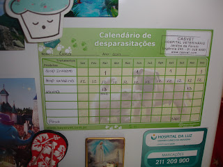 Quando fui ao veterinário deram me este iman com todas as informações relativamente á vacinação e desparasitação da minha Cuca!