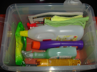 Assim meto tudo aquilo que é preciso para limpar a casa dentro desta caixa que me acompanha por toda a casa e o problema ta resolvido!