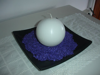 O meu quarto é em tons de branco, preto e roxo..e quis decorar a minha cómoda com esses tons...e fi-lo de forma muito simples: um prato preto, pedrinhas roxas e uma vela branca e já está! Gosto muito deste arranjo...e vocês?